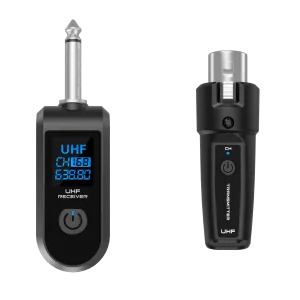 1. Stage performance to home use.2. Single channel wireless microphone system3. IR auto scan & ACT channel sync setup4. Working at low interference UHF band (600-865MHz)5. LCD display working status on both receiver and transmitter6. Smart handheld microphone and rugged half rack size receiver 7. Reliable SMT technology8. Dual filter design makes better anti-interference ability9. External TNC rubber antenna10. High performance capsule11. Balanced and line output available.​​
